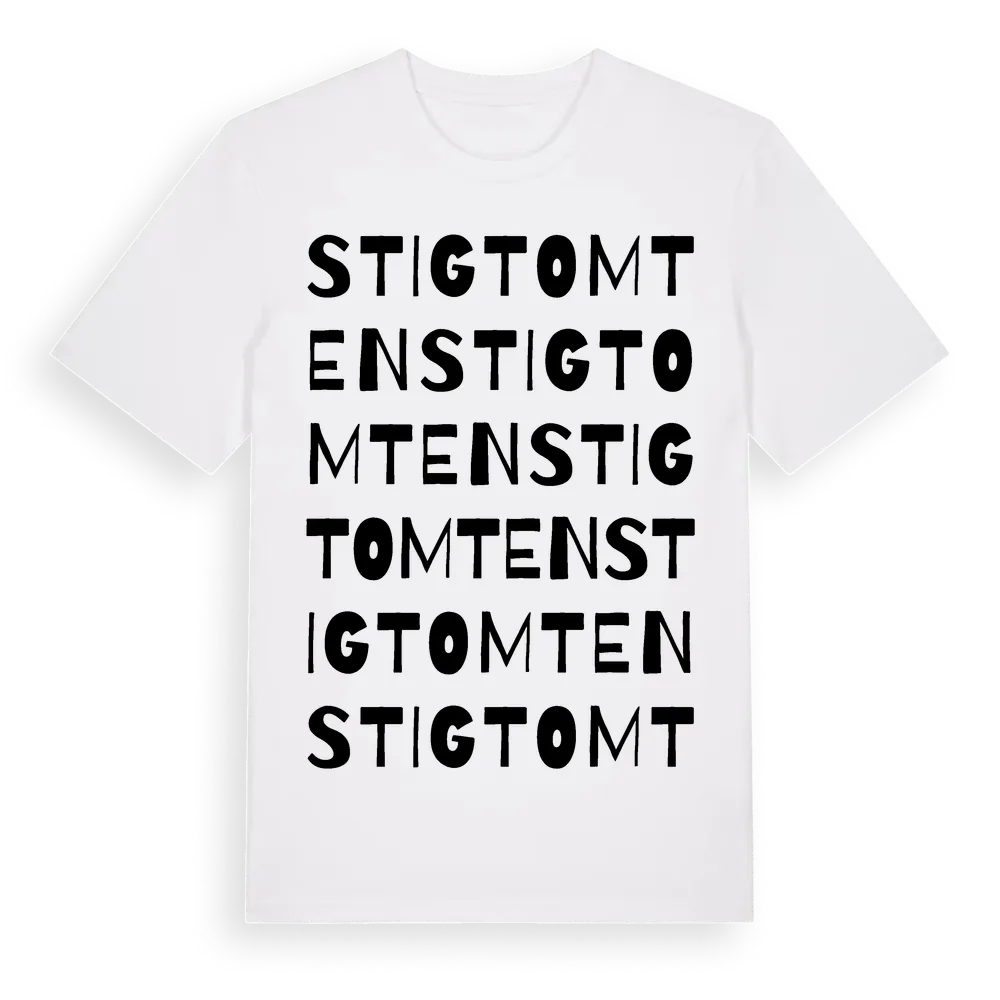 En ordlek byggd på Stigtomtens namn. Subtilt och klurig – ett motiv som bara de som verkligen känner platsen fullt ut förstår. Premium bomull, unisex – från Stigtomten i Stockholms län.