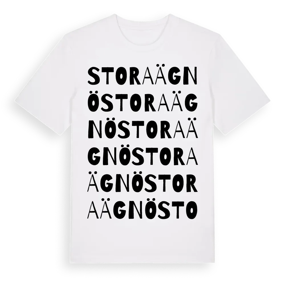 Stora Ägnö ordlek t-shirt är inspirerad av byn Stora Ägnö i Stockholms län, Sverige. Tröjan är designad för dig som har en speciell koppling till platsen – oavsett om du bor här, har rötterna här eller bara älskar Stora Ägnö.
