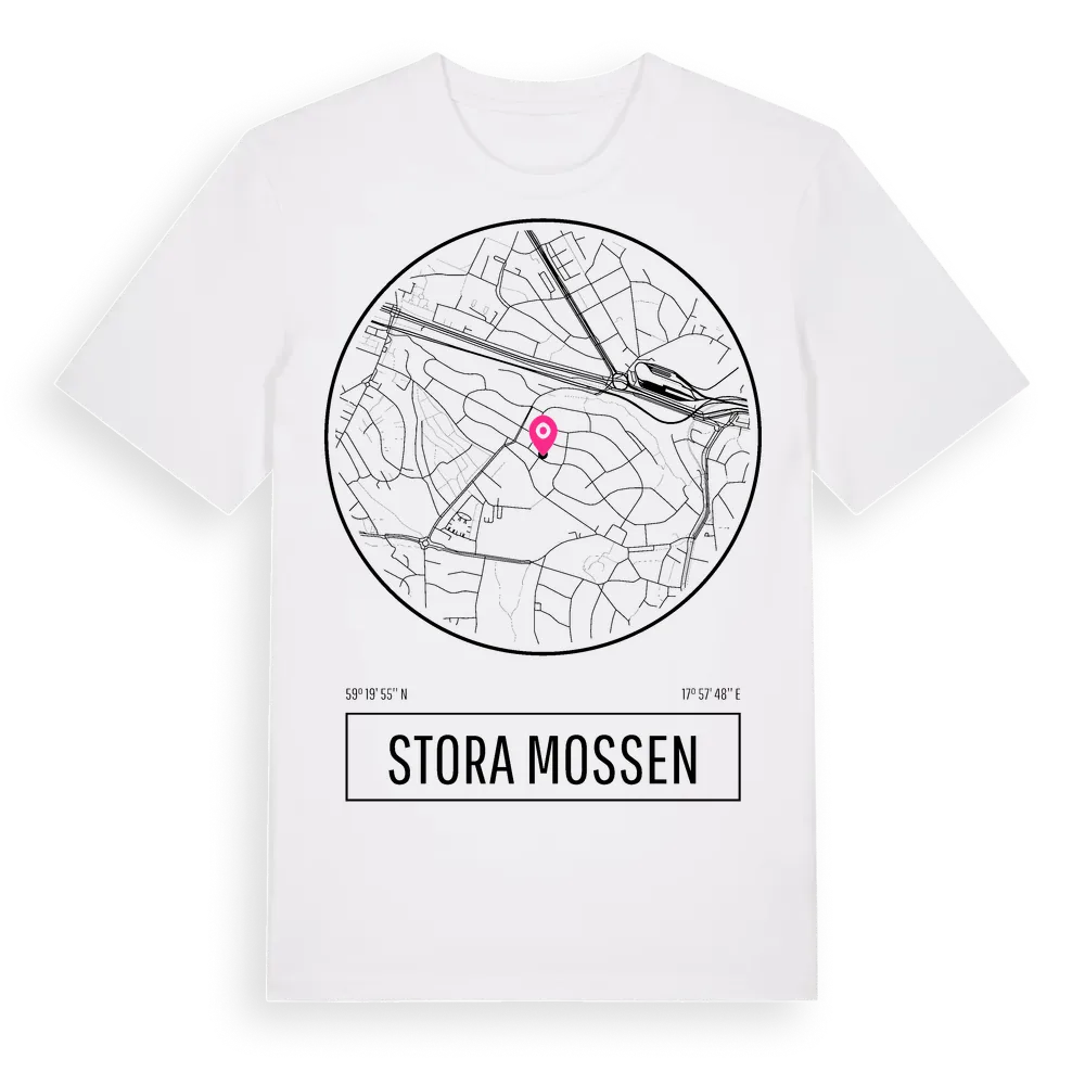 Stora Mossen t-shirt är inspirerad av Stora Mossen i Stockholms län, Sverige. Tröjan är designad för dig som har en speciell koppling till platsen – oavsett om du bor här, har rötterna här eller bara älskar Stora Mossen.