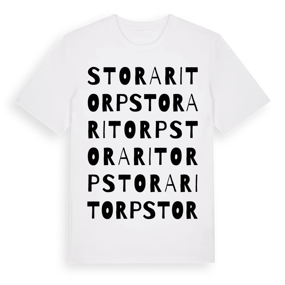 Stora Ritorp ordlek t-shirt är inspirerad av Stora Ritorp i Stockholms län, Sverige. Tröjan är designad för dig som har en speciell koppling till platsen – oavsett om du bor här, har rötterna här eller bara älskar Stora Ritorp.