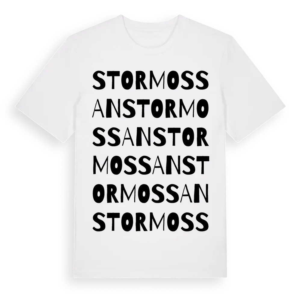 Stormossan ordlek t-shirt är inspirerad av Stormossan i Stockholms län, Sverige. Tröjan är designad för dig som har en speciell koppling till platsen – oavsett om du bor här, har rötterna här eller bara älskar Stormossan.