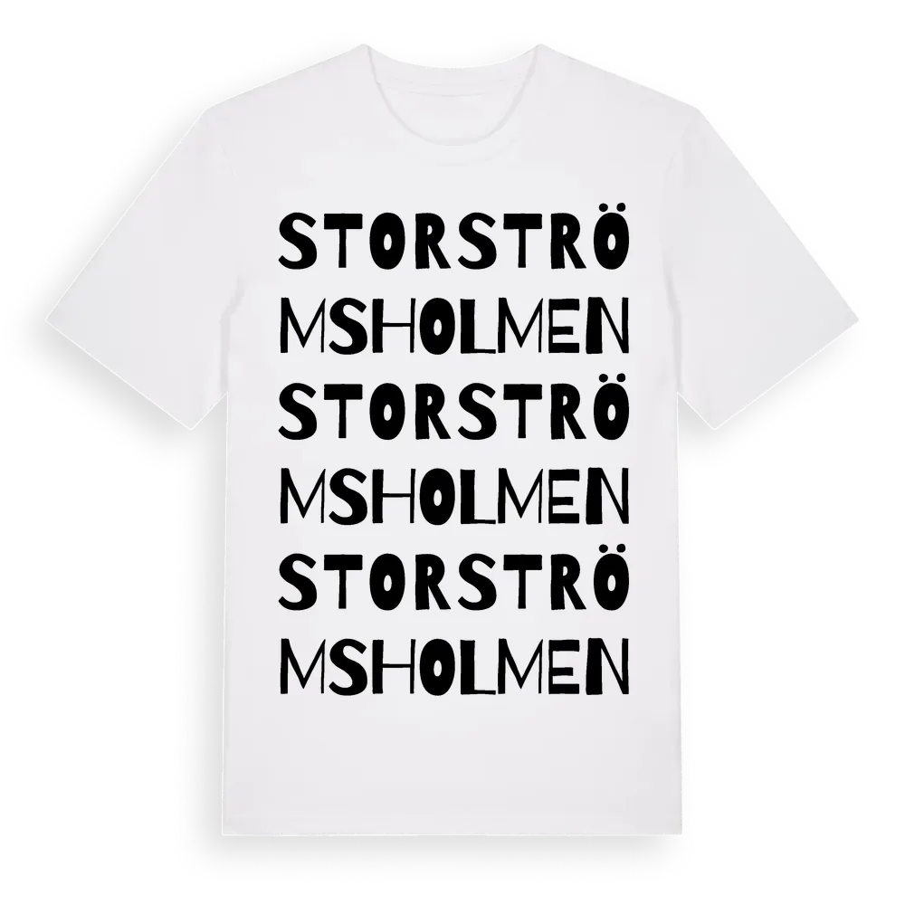Storströmsholmen ordlek t-shirt är inspirerad av Storströmsholmen i Stockholms län, Sverige. Tröjan är designad för dig som har en speciell koppling till platsen – oavsett om du bor här, har rötterna här eller bara älskar Storströmsholmen.
