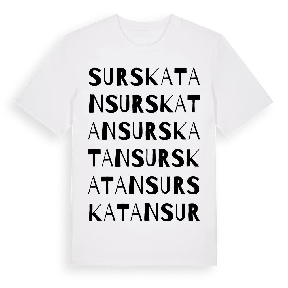 Surskatan ordlek t-shirt är inspirerad av Surskatan i Stockholms län, Sverige. Tröjan är designad för dig som har en speciell koppling till platsen – oavsett om du bor här, har rötterna här eller bara älskar Surskatan.