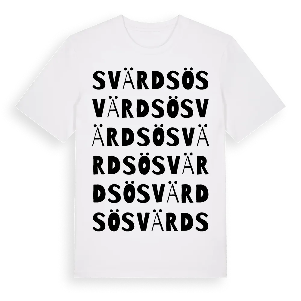 Svärdsö ordlek t-shirt är inspirerad av ön Svärdsö i Stockholms län, Sverige. Tröjan är designad för dig som har en speciell koppling till platsen – oavsett om du bor här, har rötterna här eller bara älskar Svärdsö.