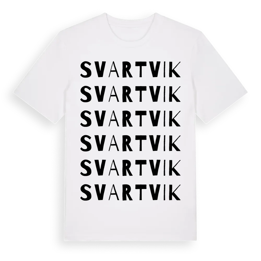 Svartvik ordlek t-shirt är inspirerad av stadsdelen Svartvik i Stockholms län, Sverige. Tröjan är designad för dig som har en speciell koppling till platsen – oavsett om du bor här, har rötterna här eller bara älskar Svartvik.