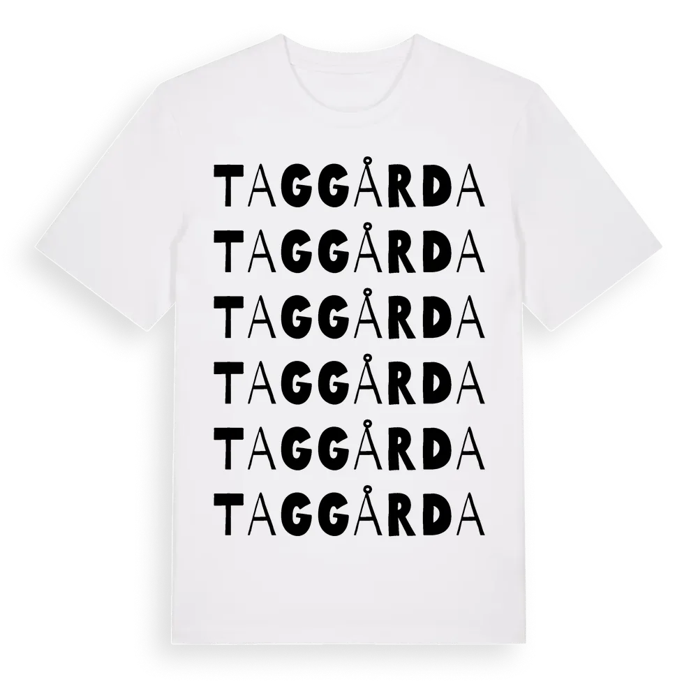 Taggårda ordlek t-shirt är inspirerad av Taggårda i Stockholms län, Sverige. Tröjan är designad för dig som har en speciell koppling till platsen – oavsett om du bor här, har rötterna här eller bara älskar Taggårda.