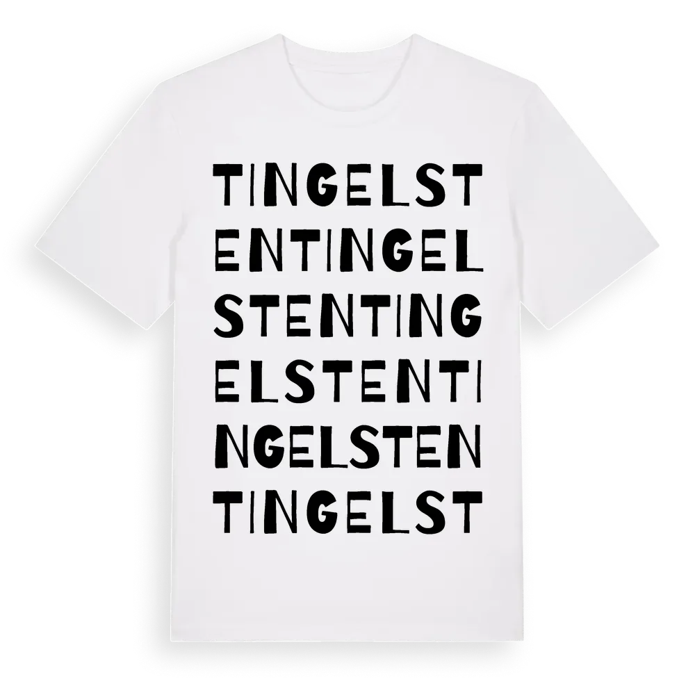 En ordlek byggd på Tingelstens namn. Subtilt och klurig – ett motiv som bara de som verkligen känner platsen fullt ut förstår. Premium bomull, unisex – från Tingelsten i Stockholms län.