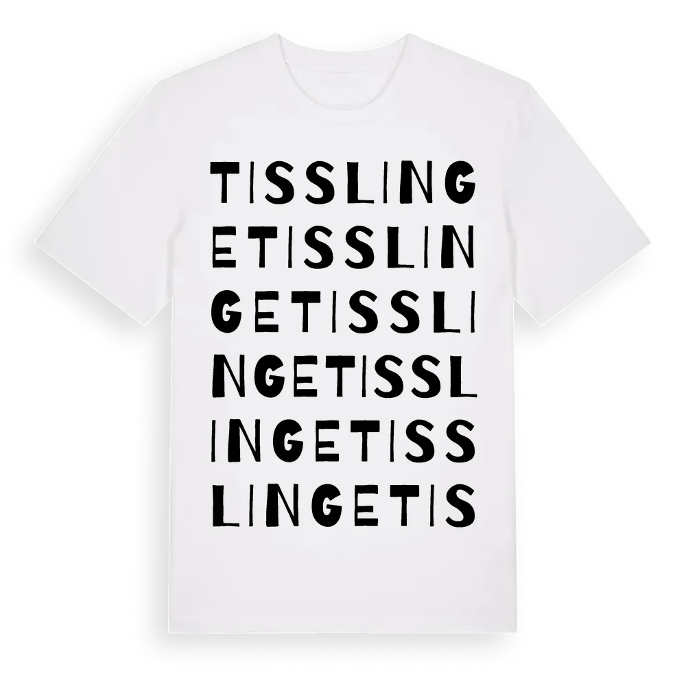 En ordlek byggd på Tisslinges namn. Subtilt och klurig – ett motiv som bara de som verkligen känner platsen fullt ut förstår. Premium bomull, unisex – från byn Tisslinge i Stockholms län.