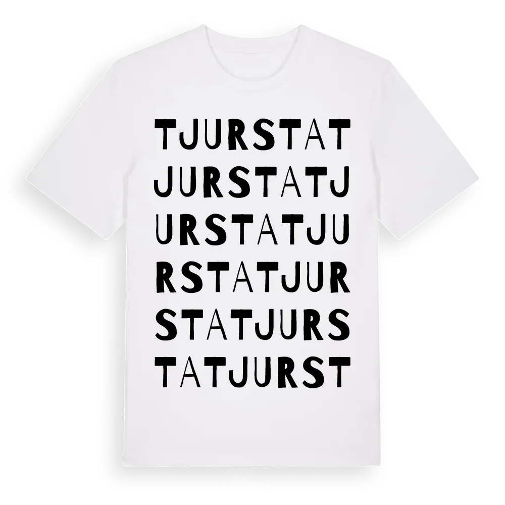 Tjursta ordlek t-shirt är inspirerad av Tjursta i Stockholms län, Sverige. Tröjan är designad för dig som har en speciell koppling till platsen – oavsett om du bor här, har rötterna här eller bara älskar Tjursta.