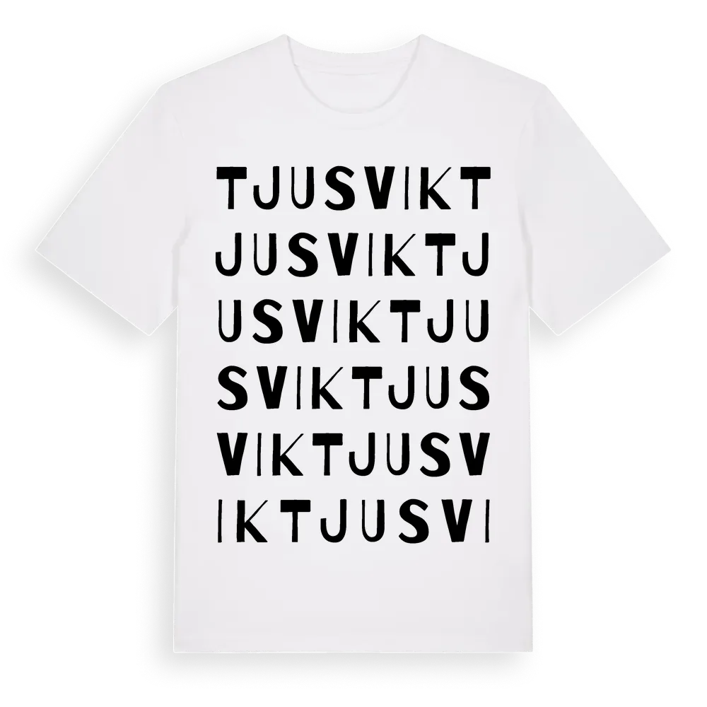 Tjusvik ordlek t-shirt är inspirerad av byn Tjusvik i Stockholms län, Sverige. Tröjan är designad för dig som har en speciell koppling till platsen – oavsett om du bor här, har rötterna här eller bara älskar Tjusvik.