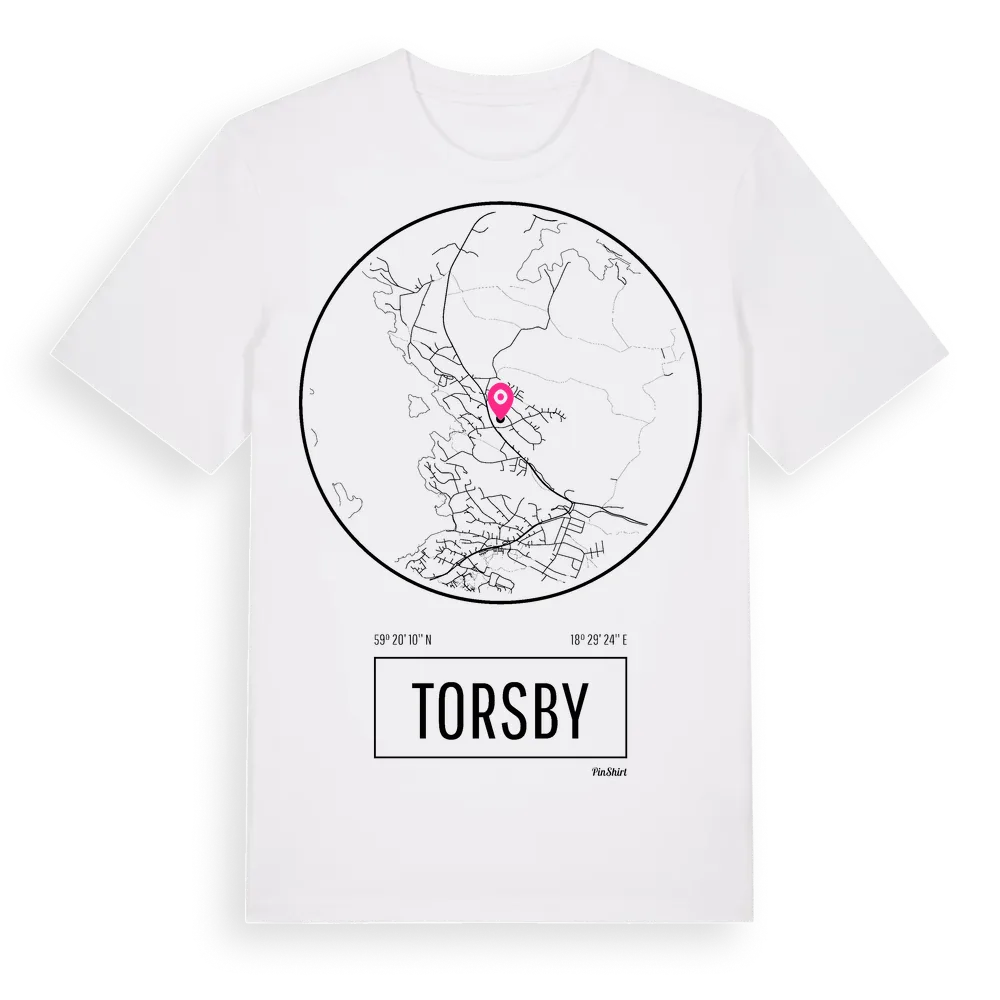 Torsby t-shirt är inspirerad av byn Torsby i Stockholms län, Sverige. Tröjan är designad för dig som har en speciell koppling till platsen – oavsett om du bor här, har rötterna här eller bara älskar Torsby.