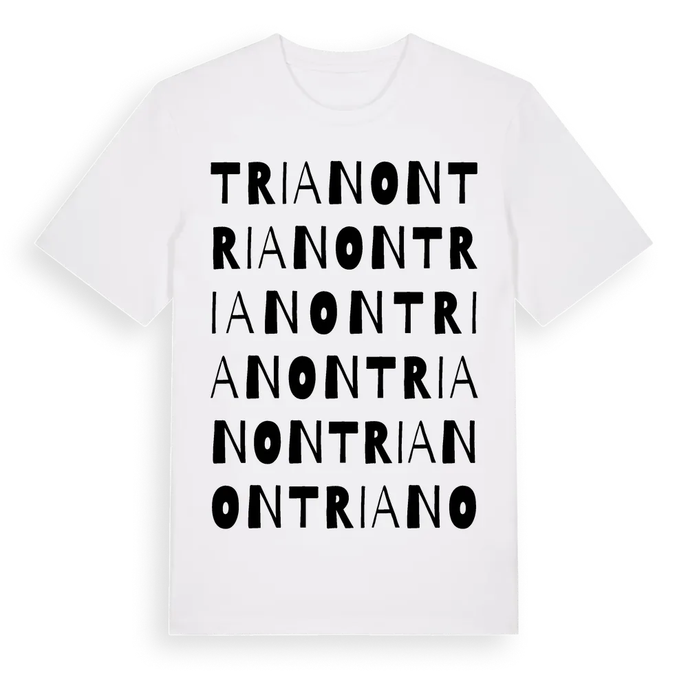 En ordlek byggd på Trianons namn. Subtilt och klurig – ett motiv som bara de som verkligen känner platsen fullt ut förstår. Premium bomull, unisex – från Trianon i Stockholms län.