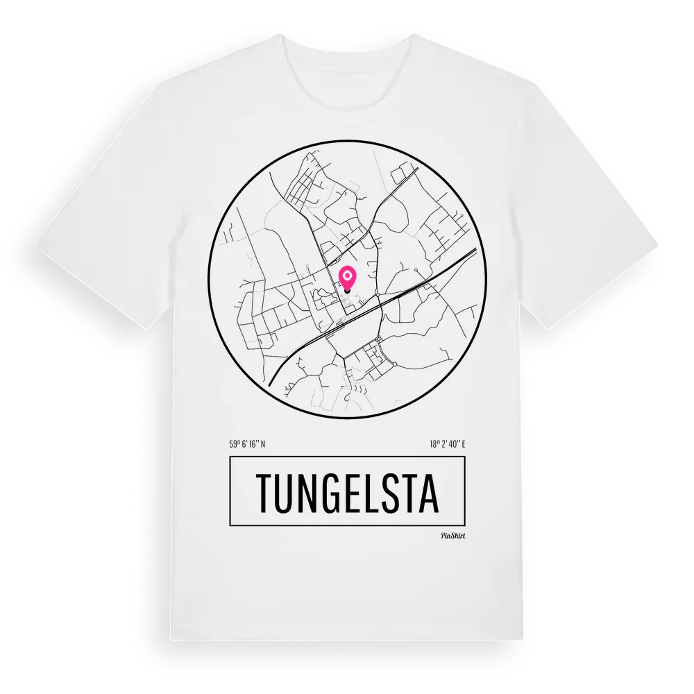 Tungelsta t-shirt är inspirerad av stadsdelen Tungelsta i Stockholms län, Sverige. Tröjan är designad för dig som har en speciell koppling till platsen – oavsett om du bor här, har rötterna här eller bara älskar Tungelsta.