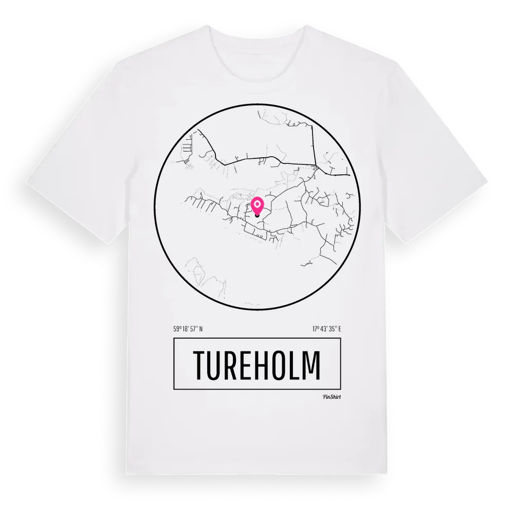 Tureholm t-shirt är inspirerad av byn Tureholm i Stockholms län, Sverige. Tröjan är designad för dig som har en speciell koppling till platsen – oavsett om du bor här, har rötterna här eller bara älskar Tureholm.