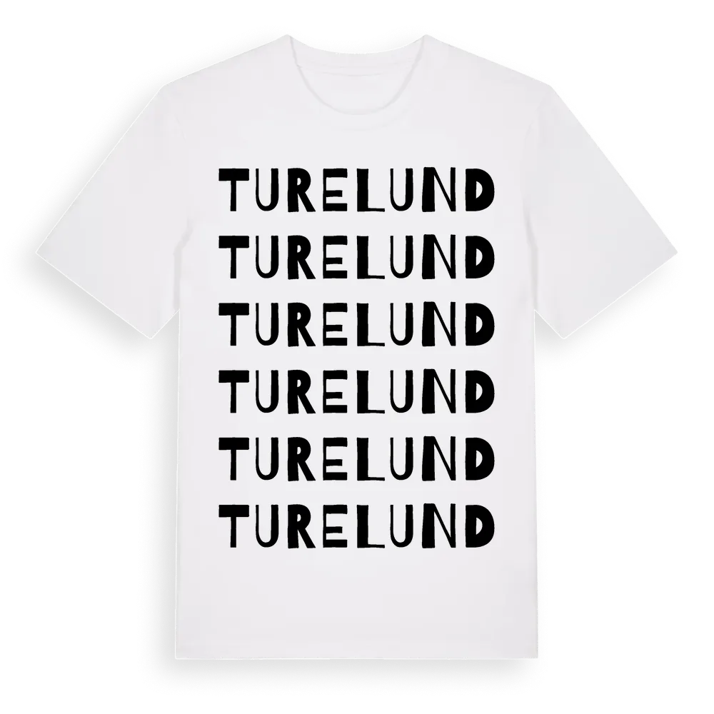 Turelund ordlek t-shirt är inspirerad av Turelund i Stockholms län, Sverige. Tröjan är designad för dig som har en speciell koppling till platsen – oavsett om du bor här, har rötterna här eller bara älskar Turelund.
