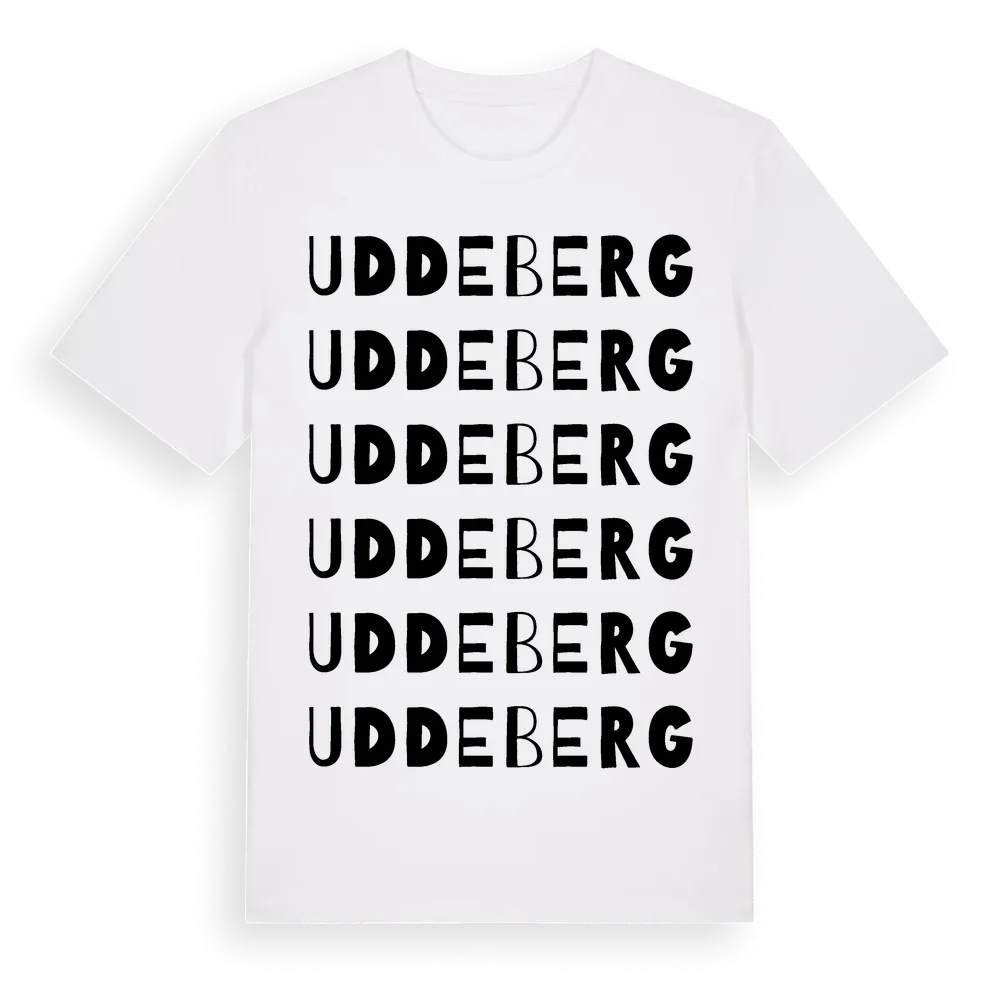 Uddeberg ordlek t-shirt är inspirerad av Uddeberg i Stockholms län, Sverige. Tröjan är designad för dig som har en speciell koppling till platsen – oavsett om du bor här, har rötterna här eller bara älskar Uddeberg.