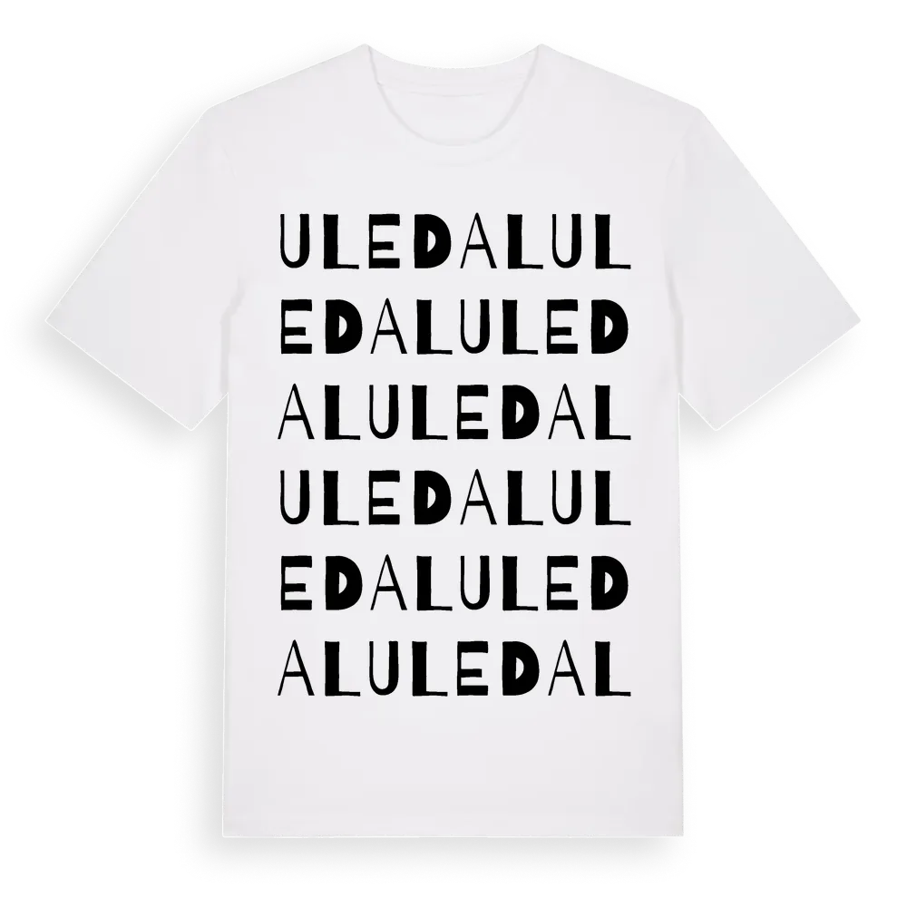 Uledal ordlek t-shirt är inspirerad av Uledal i Stockholms län, Sverige. Tröjan är designad för dig som har en speciell koppling till platsen – oavsett om du bor här, har rötterna här eller bara älskar Uledal.