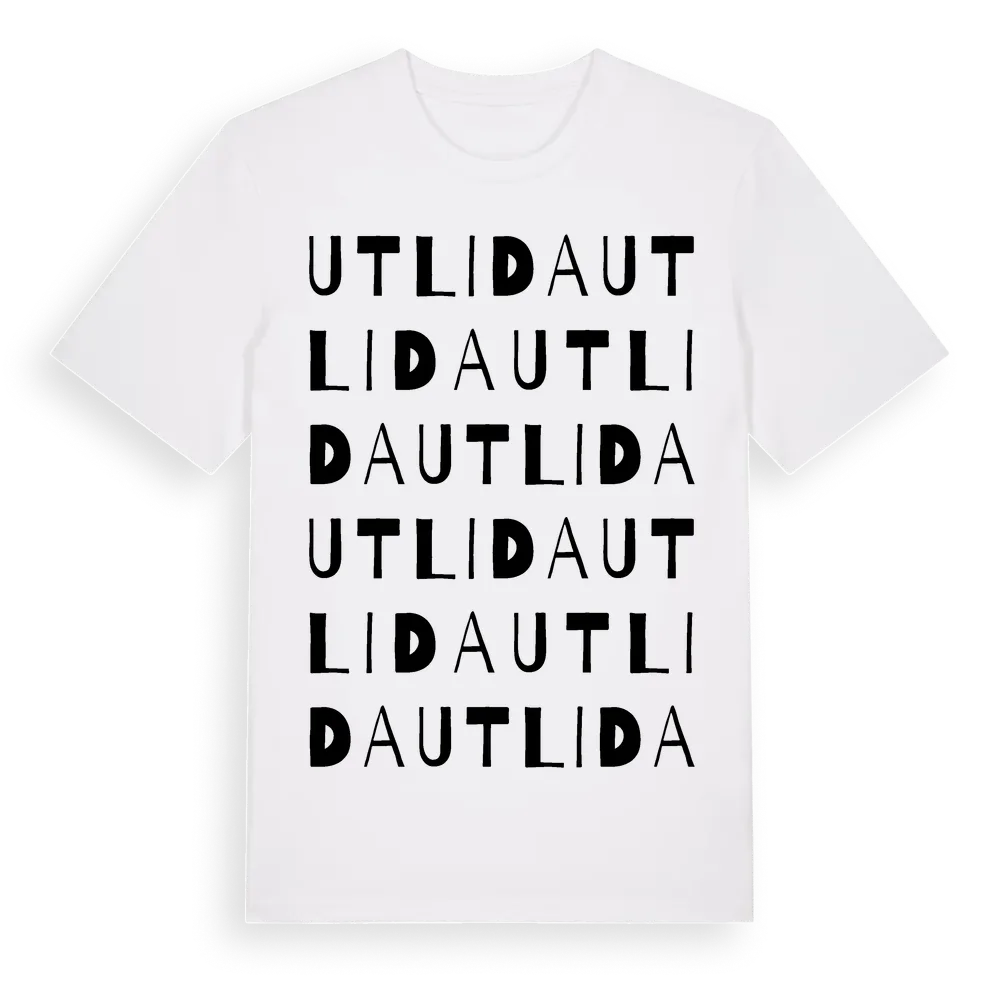 Utlida ordlek t-shirt är inspirerad av byn Utlida i Stockholms län, Sverige. Tröjan är designad för dig som har en speciell koppling till platsen – oavsett om du bor här, har rötterna här eller bara älskar Utlida.