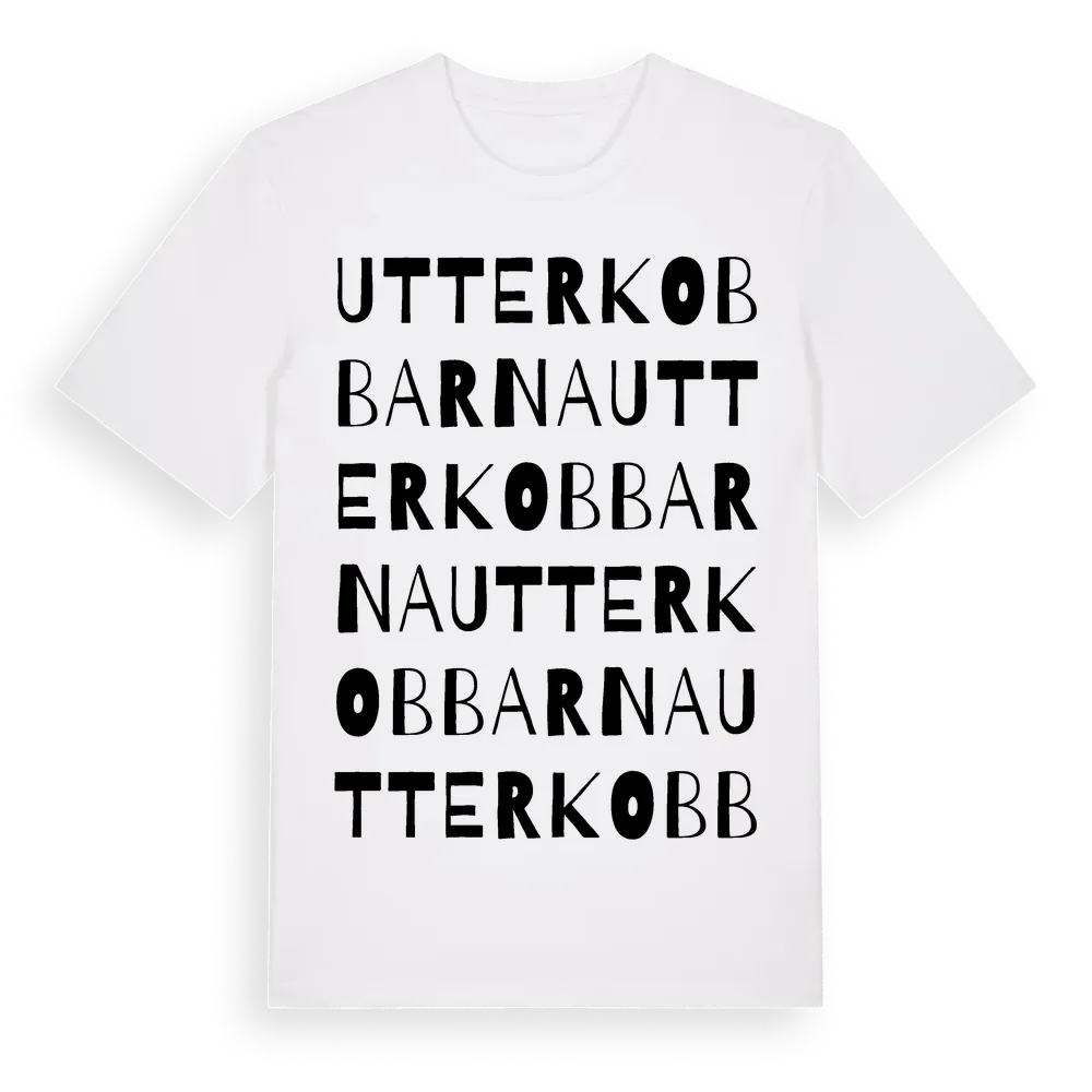 Utterkobbarna ordlek t-shirt är inspirerad av Utterkobbarna i Stockholms län, Sverige. Tröjan är designad för dig som har en speciell koppling till platsen – oavsett om du bor här, har rötterna här eller bara älskar Utterkobbarna.