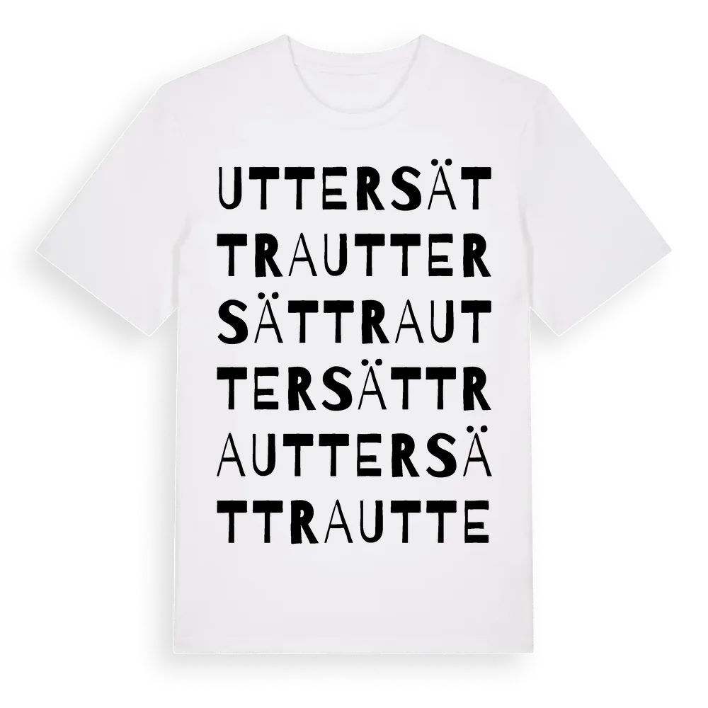 Uttersättra ordlek t-shirt är inspirerad av byn Uttersättra i Stockholms län, Sverige. Tröjan är designad för dig som har en speciell koppling till platsen – oavsett om du bor här, har rötterna här eller bara älskar Uttersättra.