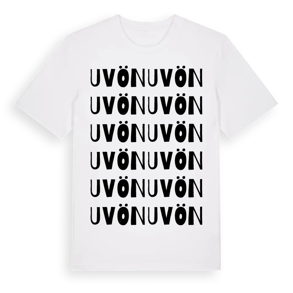 En ordlek byggd på Uvöns namn. Subtilt och klurig – ett motiv som bara de som verkligen känner platsen fullt ut förstår. Premium bomull, unisex – från ön Uvön i Stockholms län.