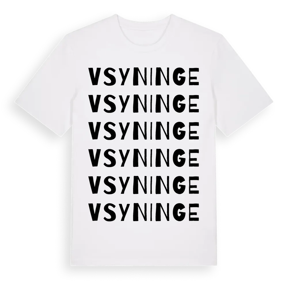 En ordlek byggd på V Syninges namn. Subtilt och klurig – ett motiv som bara de som verkligen känner platsen fullt ut förstår. Premium bomull, unisex – från V Syninge i Stockholms län.
