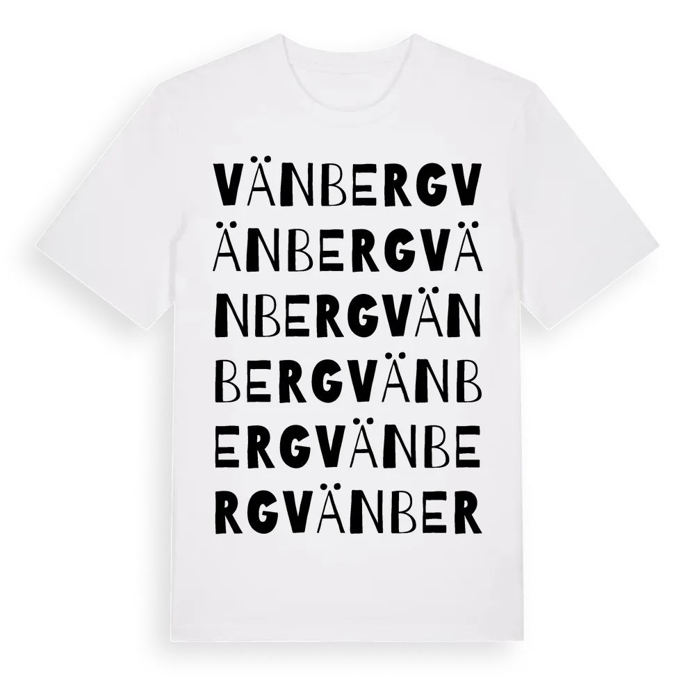 Vänberg ordlek t-shirt är inspirerad av Vänberg i Stockholms län, Sverige. Tröjan är designad för dig som har en speciell koppling till platsen – oavsett om du bor här, har rötterna här eller bara älskar Vänberg.