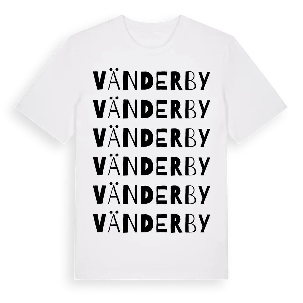 Vänderby ordlek t-shirt är inspirerad av stadsdelen Vänderby i Stockholms län, Sverige. Tröjan är designad för dig som har en speciell koppling till platsen – oavsett om du bor här, har rötterna här eller bara älskar Vänderby.