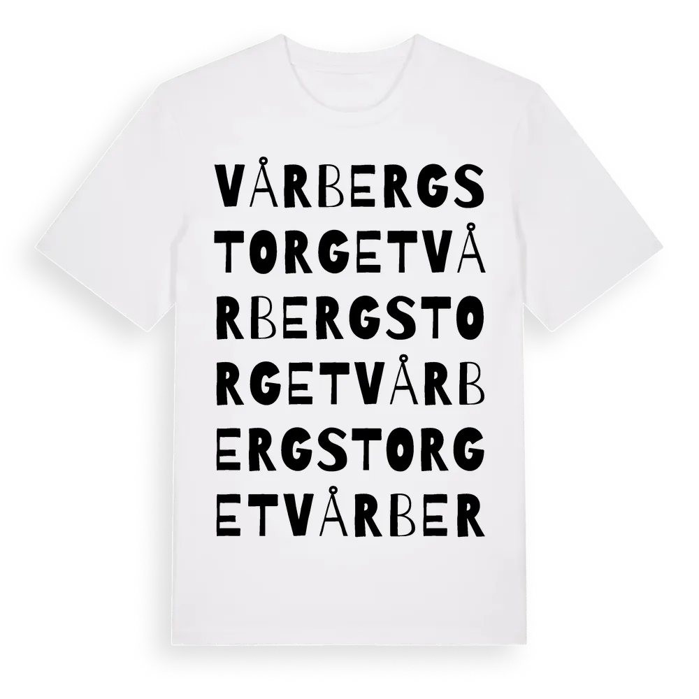 Vårbergstorget ordlek t-shirt är inspirerad av Vårbergstorget i Stockholms län, Sverige. Tröjan är designad för dig som har en speciell koppling till platsen – oavsett om du bor här, har rötterna här eller bara älskar Vårbergstorget.