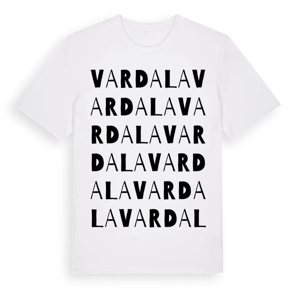 En ordlek byggd på Vardalas namn. Subtilt och klurig – ett motiv som bara de som verkligen känner platsen fullt ut förstår. Premium bomull, unisex – från Vardala i Stockholms län.