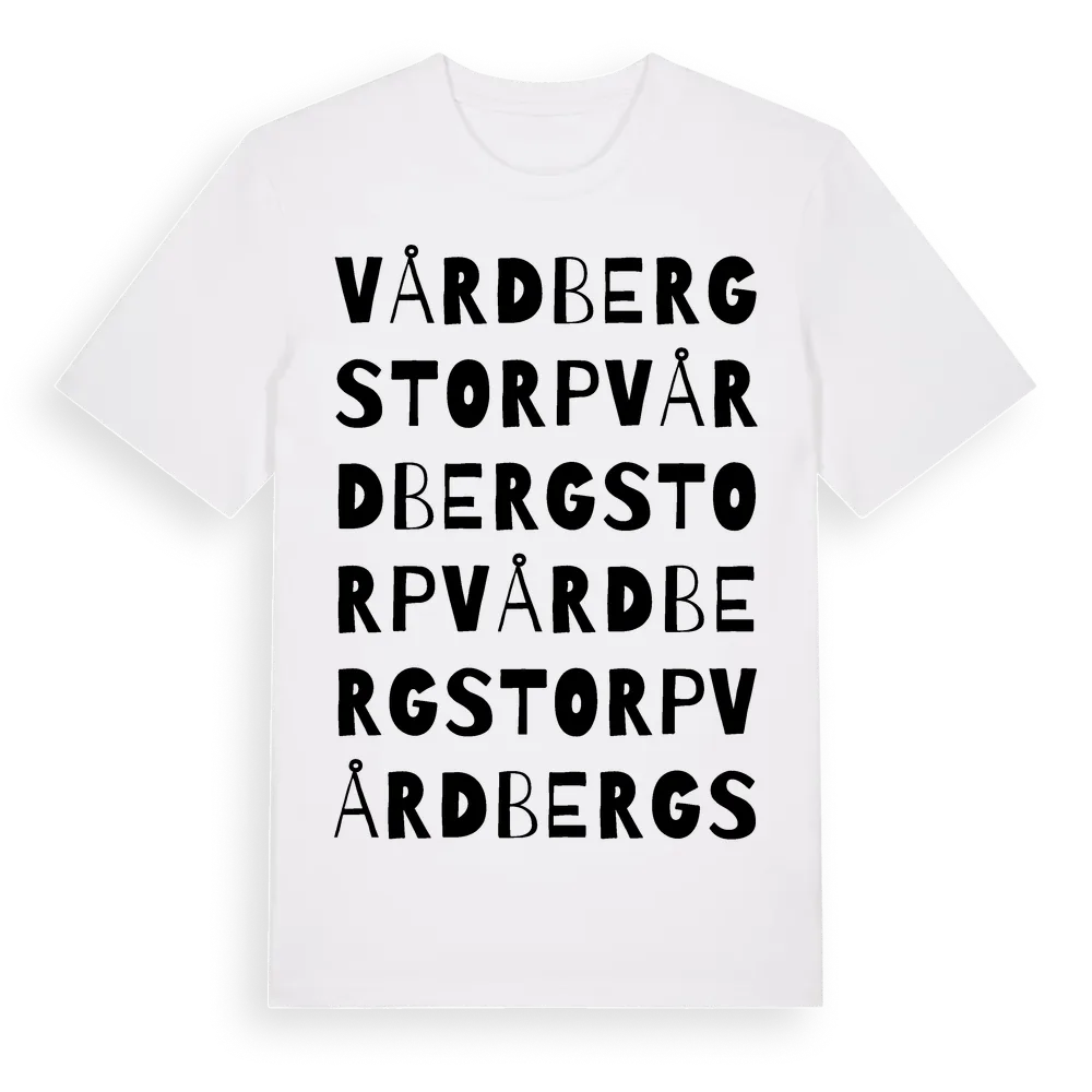 Vårdbergstorp ordlek t-shirt är inspirerad av Vårdbergstorp i Stockholms län, Sverige. Tröjan är designad för dig som har en speciell koppling till platsen – oavsett om du bor här, har rötterna här eller bara älskar Vårdbergstorp.