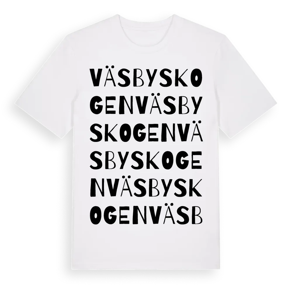 Väsbyskogen ordlek t-shirt är inspirerad av stadsdelen Väsbyskogen i Stockholms län, Sverige. Tröjan är designad för dig som har en speciell koppling till platsen – oavsett om du bor här, har rötterna här eller bara älskar Väsbyskogen.