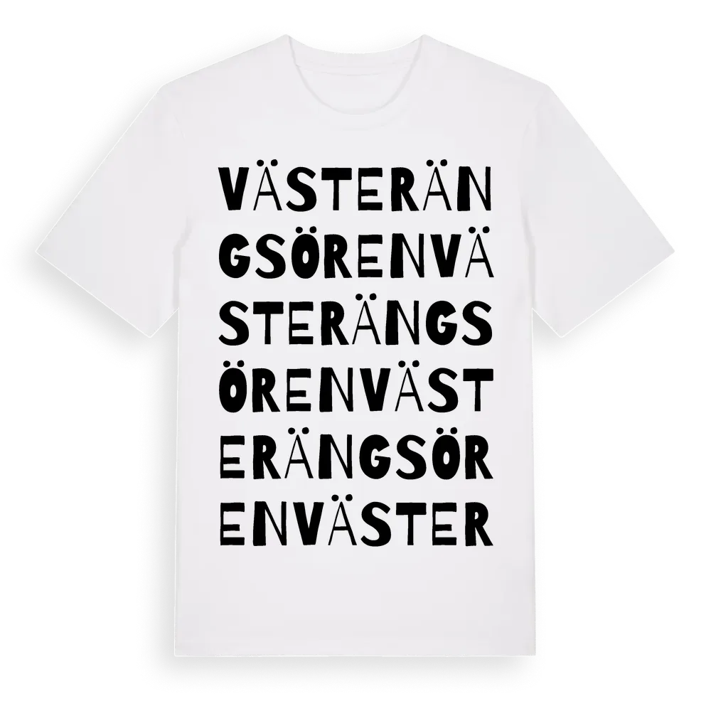 Västerängsören ordlek t-shirt är inspirerad av Västerängsören i Stockholms län, Sverige. Tröjan är designad för dig som har en speciell koppling till platsen – oavsett om du bor här, har rötterna här eller bara älskar Västerängsören.