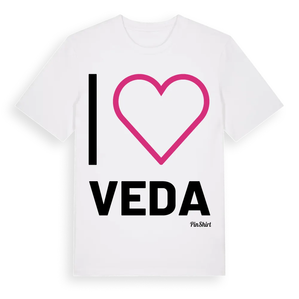 Det klassiska "I ❤ Veda"-motivet i stort format som täcker hela bröstet. För dig som vill visa kärleken till Veda på riktigt. Premium bomull, unisex – från Veda i Stockholms län.
