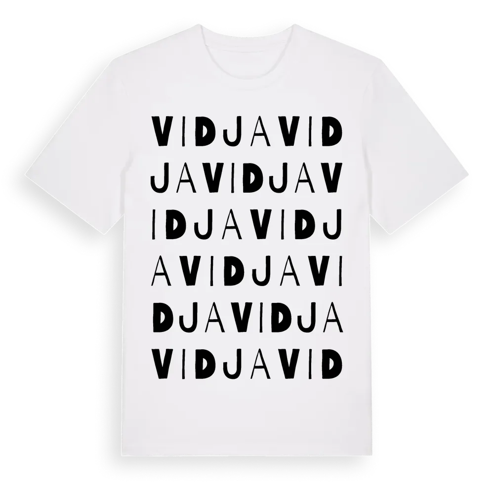 Vidja ordlek t-shirt är inspirerad av byn Vidja i Stockholms län, Sverige. Tröjan är designad för dig som har en speciell koppling till platsen – oavsett om du bor här, har rötterna här eller bara älskar Vidja.