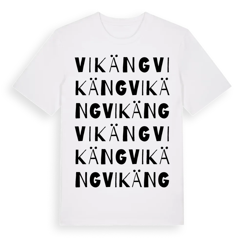 En ordlek byggd på Vikängs namn. Subtilt och klurig – ett motiv som bara de som verkligen känner platsen fullt ut förstår. Premium bomull, unisex – från byn Vikäng i Stockholms län.