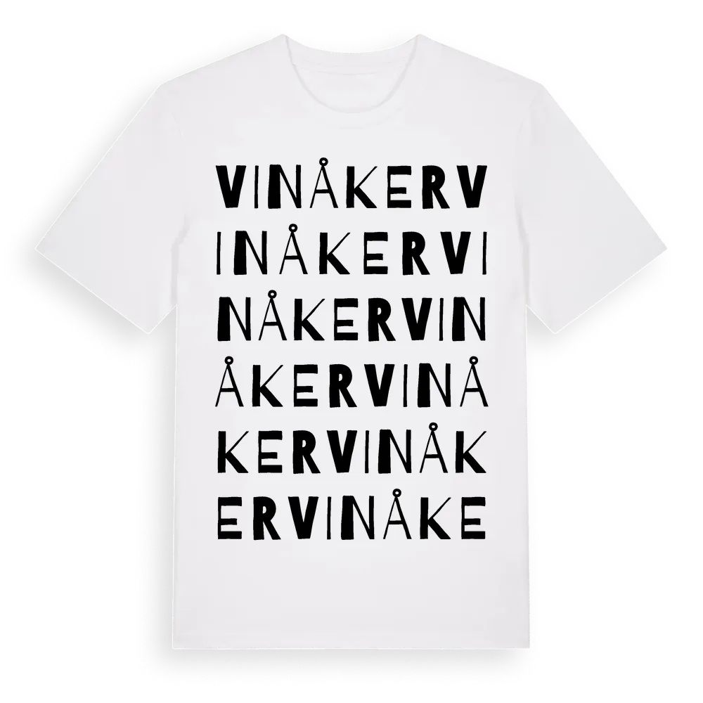 Vinåker ordlek t-shirt är inspirerad av Vinåker i Stockholms län, Sverige. Tröjan är designad för dig som har en speciell koppling till platsen – oavsett om du bor här, har rötterna här eller bara älskar Vinåker.