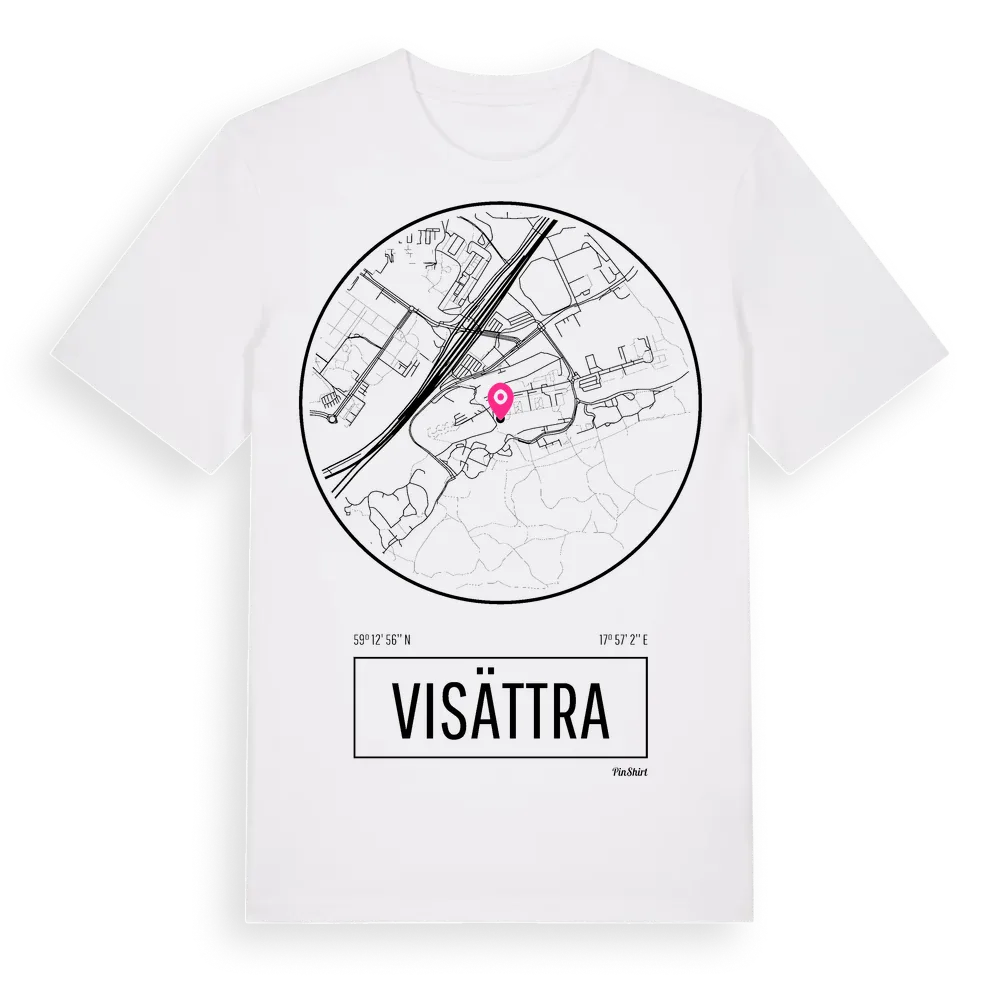 Ett rent, runt tryck med Visättras namn. Minimalistiskt och stilrent – perfekt för den som känner platsen utan att skrika det. Premium bomull, unisex – från stadsdelen Visättra i Stockholms län.