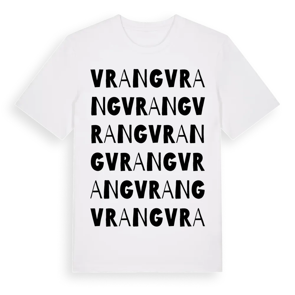 Vrang ordlek t-shirt är inspirerad av Vrang i Stockholms län, Sverige. Tröjan är designad för dig som har en speciell koppling till platsen – oavsett om du bor här, har rötterna här eller bara älskar Vrang.