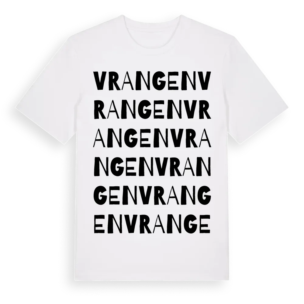 Vrangen ordlek t-shirt är inspirerad av Vrangen i Stockholms län, Sverige. Tröjan är designad för dig som har en speciell koppling till platsen – oavsett om du bor här, har rötterna här eller bara älskar Vrangen.