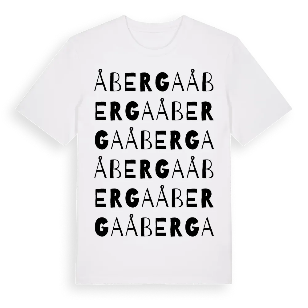 Åberga ordlek t-shirt är inspirerad av Åberga i Uppsala län, Sverige. Tröjan är designad för dig som har en speciell koppling till platsen – oavsett om du bor här, har rötterna här eller bara älskar Åberga.