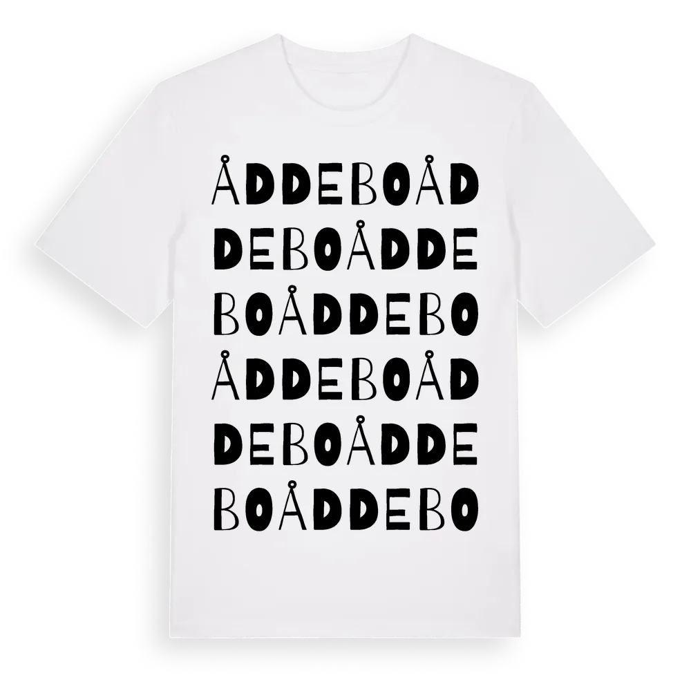 Åddebo ordlek t-shirt är inspirerad av byn Åddebo i Uppsala län, Sverige. Tröjan är designad för dig som har en speciell koppling till platsen – oavsett om du bor här, har rötterna här eller bara älskar Åddebo.