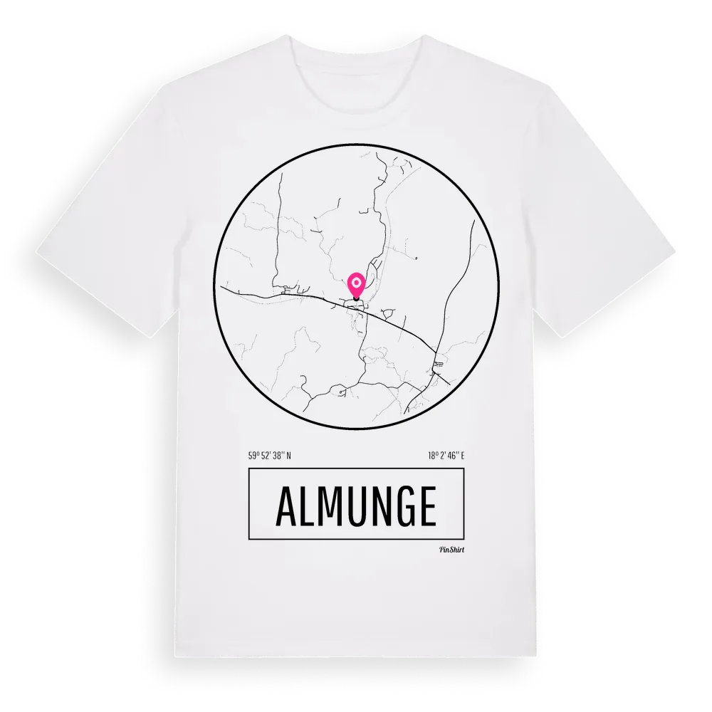 Almunge t-shirt är inspirerad av byn Almunge i Uppsala län, Sverige. Tröjan är designad för dig som har en speciell koppling till platsen – oavsett om du bor här, har rötterna här eller bara älskar Almunge.