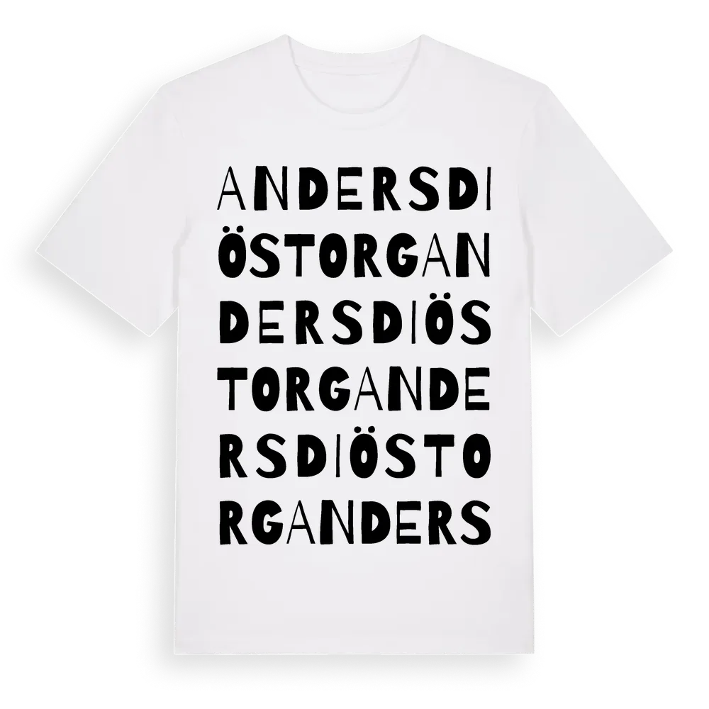 Anders Diös Torg ordlek t-shirt är inspirerad av Anders Diös Torg i Uppsala län, Sverige. Tröjan är designad för dig som har en speciell koppling till platsen – oavsett om du bor här, har rötterna här eller bara älskar Anders Diös Torg.