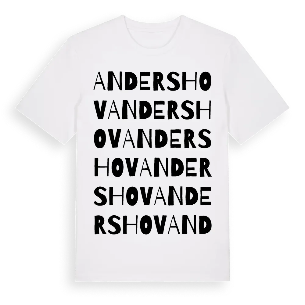 Andershov ordlek t-shirt är inspirerad av Andershov i Uppsala län, Sverige. Tröjan är designad för dig som har en speciell koppling till platsen – oavsett om du bor här, har rötterna här eller bara älskar Andershov.