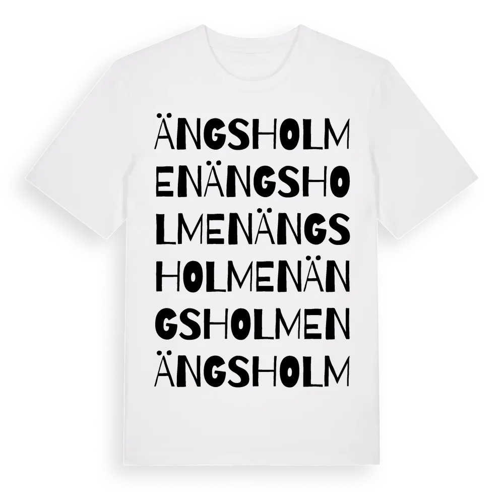 Ängsholmen ordlek t-shirt är inspirerad av Ängsholmen i Uppsala län, Sverige. Tröjan är designad för dig som har en speciell koppling till platsen – oavsett om du bor här, har rötterna här eller bara älskar Ängsholmen.