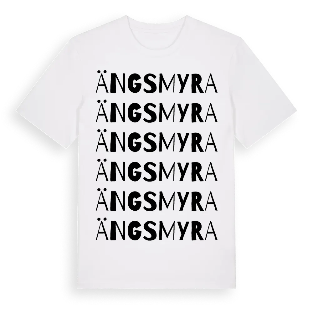 Ängsmyra ordlek t-shirt är inspirerad av Ängsmyra i Uppsala län, Sverige. Tröjan är designad för dig som har en speciell koppling till platsen – oavsett om du bor här, har rötterna här eller bara älskar Ängsmyra.
