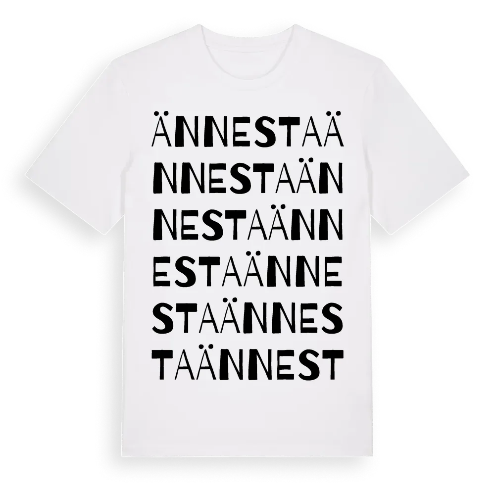Ännesta ordlek t-shirt är inspirerad av Ännesta i Uppsala län, Sverige. Tröjan är designad för dig som har en speciell koppling till platsen – oavsett om du bor här, har rötterna här eller bara älskar Ännesta.