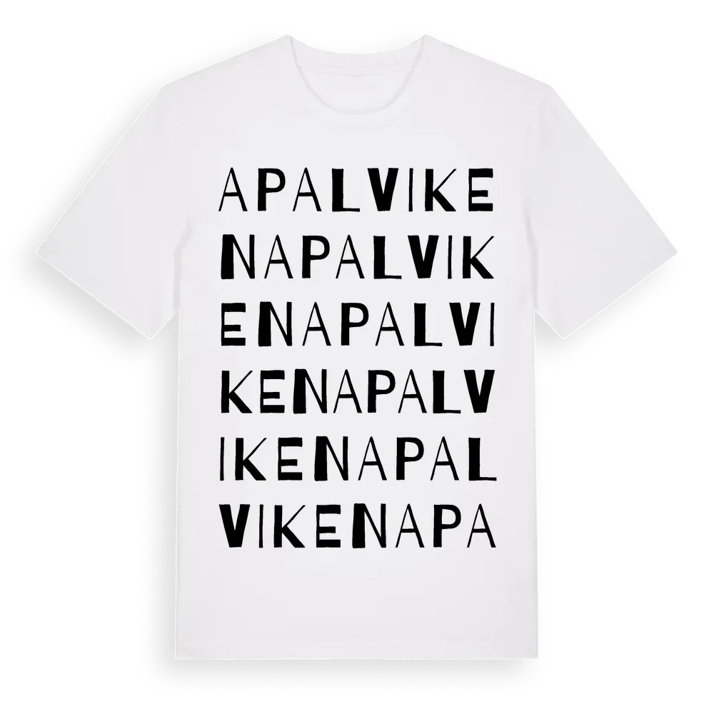 Apalviken ordlek t-shirt är inspirerad av Apalviken i Uppsala län, Sverige. Tröjan är designad för dig som har en speciell koppling till platsen – oavsett om du bor här, har rötterna här eller bara älskar Apalviken.