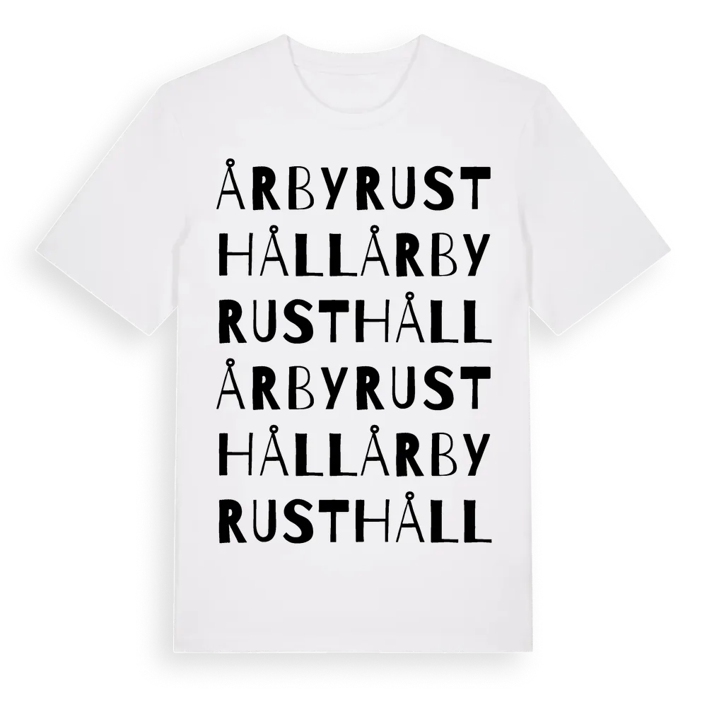 Årby Rusthåll ordlek t-shirt är inspirerad av Årby Rusthåll i Uppsala län, Sverige. Tröjan är designad för dig som har en speciell koppling till platsen – oavsett om du bor här, har rötterna här eller bara älskar Årby Rusthåll.